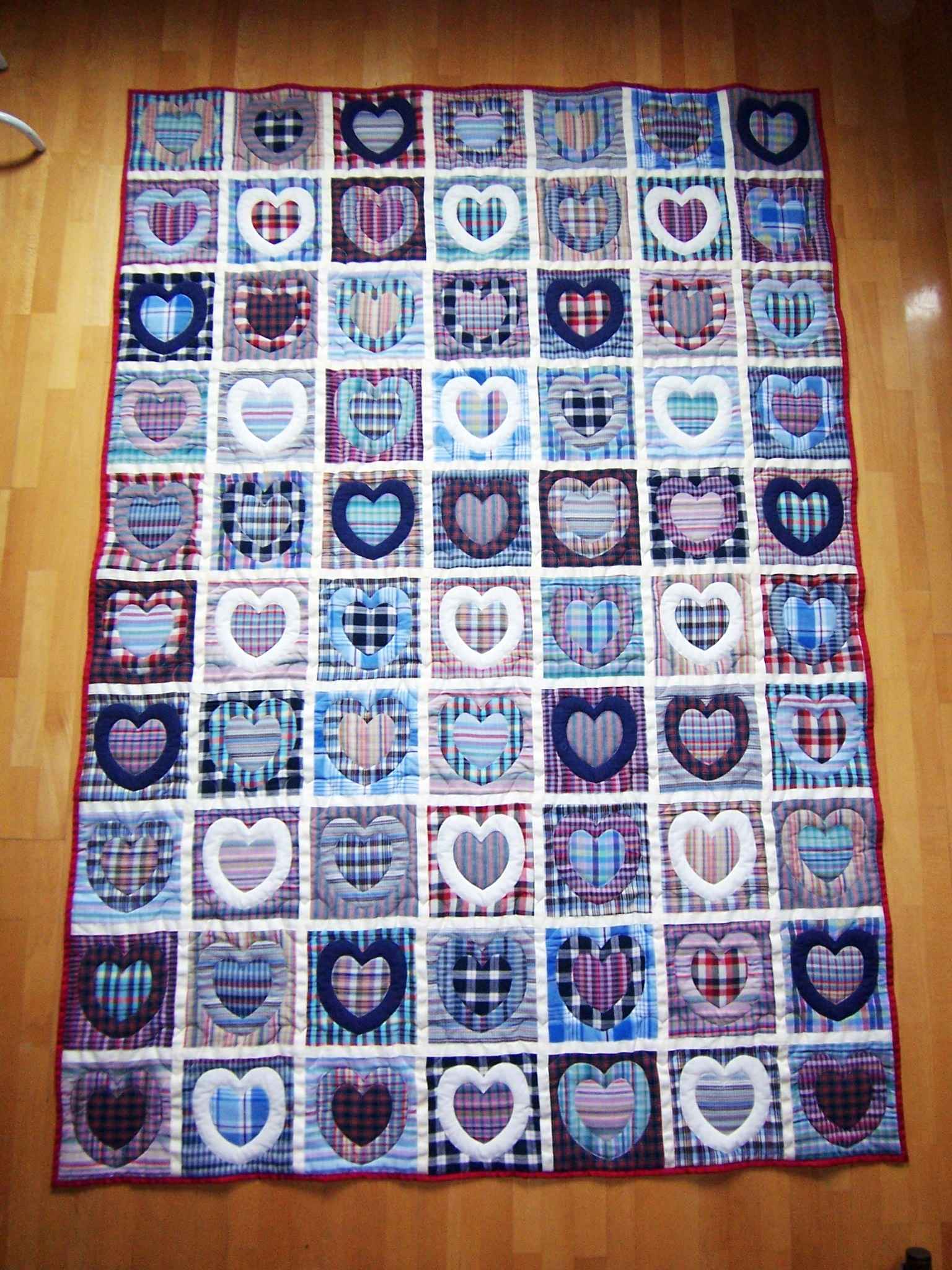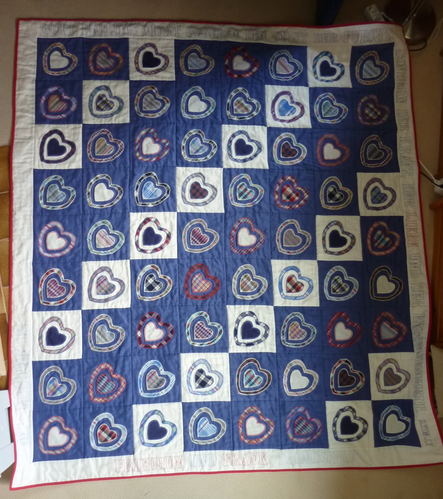 Aus den ausgeschnittenen „Hintergründen“ des „Herz und Herz vereint zusammen“-Hochzeitsquilts, habe ich einige Jahre später wieder einen Hochzeitsquilt genäht. Witzigerweise heiratete dieses Paar am selben Datum, nur 6 Jahre später.