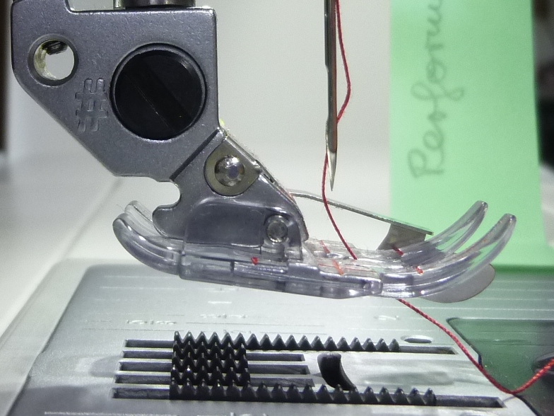- Beim Einfädeln hakelt der Faden an einem minimalen Vorsprung des Gehäuses im Schlitz vor dem Fadenheber. Es scheint ein Problem dieser speziellen Maschine zu sein. Meine vom Gehäuse eigentlich baugleichen PFAFF vision und PFAFF expression 2.0 haben das nicht. Vermutlich lässt sich das beheben, aber da es nicht meine Maschine ist, versuche ich es nicht.