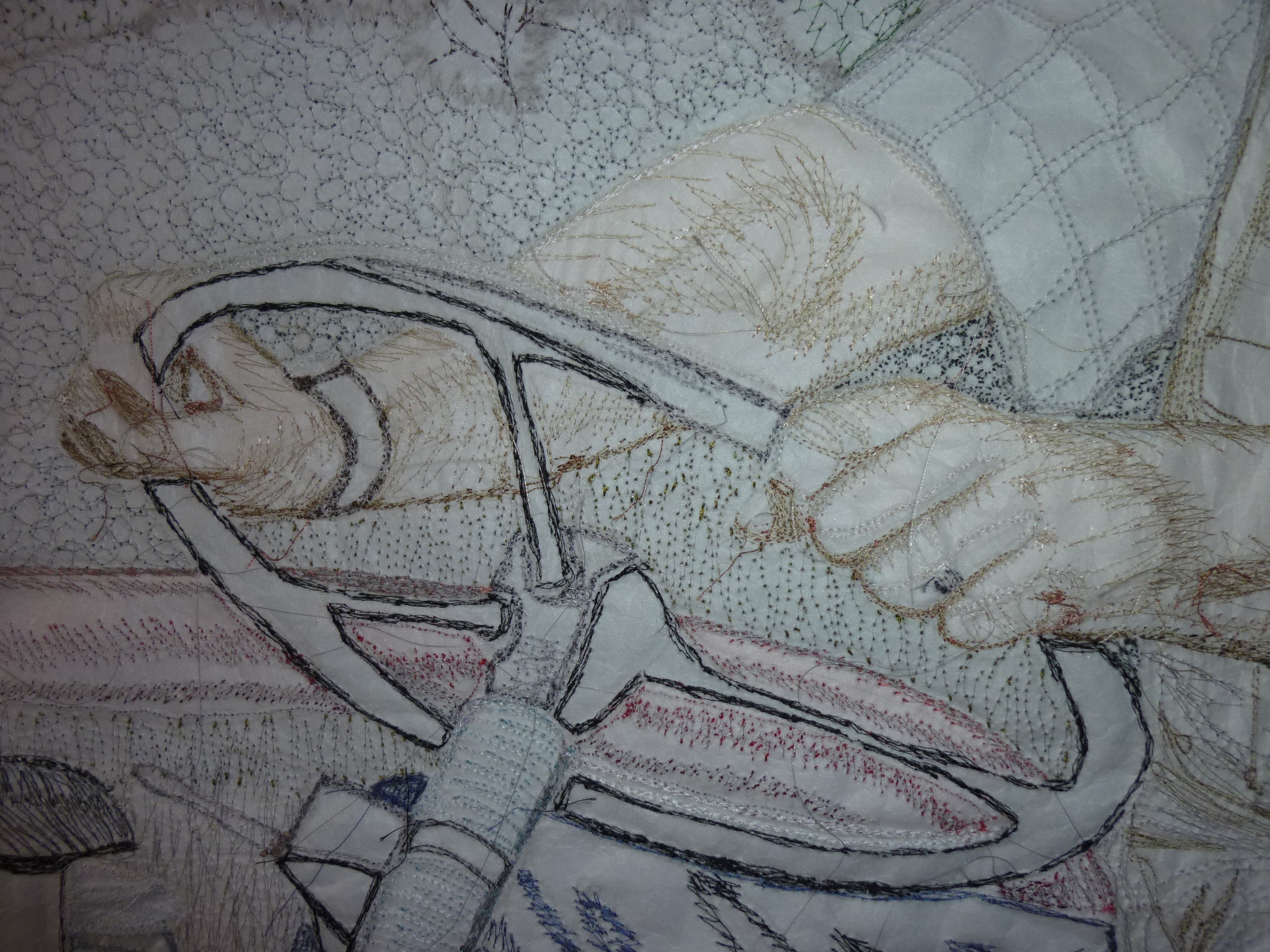 Der Quilt zeigt den Mann meines Lebens bei seinem liebsten Hobby.